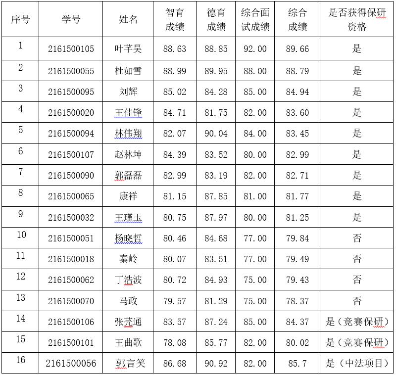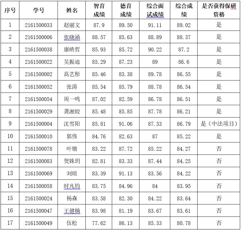 叶芊昊等22名同学(含竞赛保研、中法项目)获得推荐免试攻读硕士研究生资格,现予以公示。