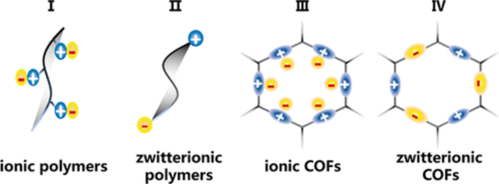 两性离子材料,同时拥有着等摩尔阳离子和阴离子基团,自20世纪50年代首次合成以来一直在离子吸附分离、储能、抗菌和生命信息监测等诸多领域展现出广阔的应用前景。离子官能团的多样性以及带电基团的空间排列,赋予了两性材料迷人的多功能性,为一种材料实现不同功能提供了无限可能。受限于现有大多数两性离子材料为无定形的高分子,其分子链缠结混乱、排列错综等内在因素导致其微观结构复杂、电荷分布不可控。因此,开发具有结构明确的两性材料能够精准揭示其电荷结构信息并从分子水平上理解其结构-性能关系,这对设计功能导向的两性离子材料有着重要意义。