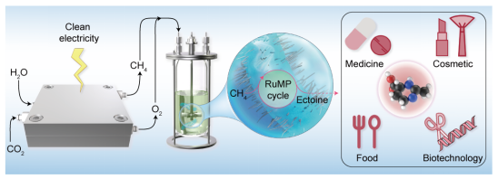 科研团队联合西北大学和电子科技大学等科研人员创新性地提出了一种新型的电化学-生物催化耦合系统,用于将CO₂和甲烷升级为高价值化妆品原料依克多因。这项工作创新性地证实了将电化学反应与微生物发酵过程相结合的可行性,实现了电化学-生物催化模块的高效适配,提出了基于一碳温室气体生物制造依克多因的新路线,同时也为缓解全球气候变化提供了一条有效途径。