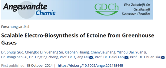 该研究成果以《可扩展电化学-生物催化耦合系统实现从温室气体合成依克多因》(Scalable Electro-Biosynthesis of Ectoine from Greenhouse Gases)为题,发表在国际顶尖学术期刊《德国应用化学》(Angewandte Chemie International Edition)上。91porn