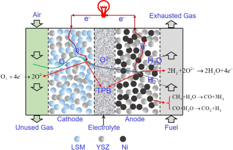 SOFC即固体氧化物燃料电池,作为一种高效、清洁的能源转换技术,具有高效率、低排放、燃料选择广泛等优势,是分布式发电和热电联供系统的理想选择。图1展示了SOFC的基本工作原理。然而,SOFC的性能和耐久性受到系统配置、堆栈结构、电极微观结构等多方面因素的影响。传统的实验优化方法成本高、耗时长,而数值模拟则能够快速、高效、经济地优化SOFC及其系统。以往综述工作缺乏针对实际问题的文献分类,且未涵盖人工智能辅助模型、异质模型等新兴模型。这些新兴模型对于加速大规模多物理场模型的求解和描述介观电极行为具有重要意义。